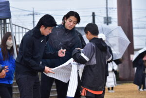 あいにくの天気での開催でしたが、参加した子どもたちは雨も吹き飛ばすほどの元気で、果敢にプロ選手から学びを得ていました。